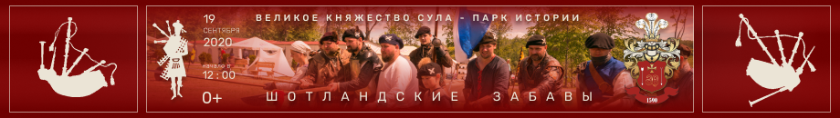 «Шотландские Забавы» – это праздник в «Парке истории Сула», где каждый участник сможет найти себе занятие по душе и погрузиться в атмосферу шотландской истории и культуры. Маневры и поединки, шотландские танцы, игры горцев, музыкальные композиции, мастер-классы, детские бои на протектированном оружии, и многое другое, не оставляющие равнодушным никого.